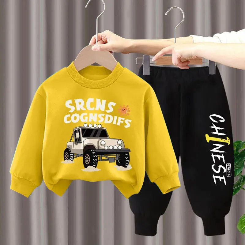 Customized Printing Boys Sweater Pants Son 2 Pcs Set Autumn Spring Outdoor Warm Children Clothes Set Casual Kid Clothes Set
