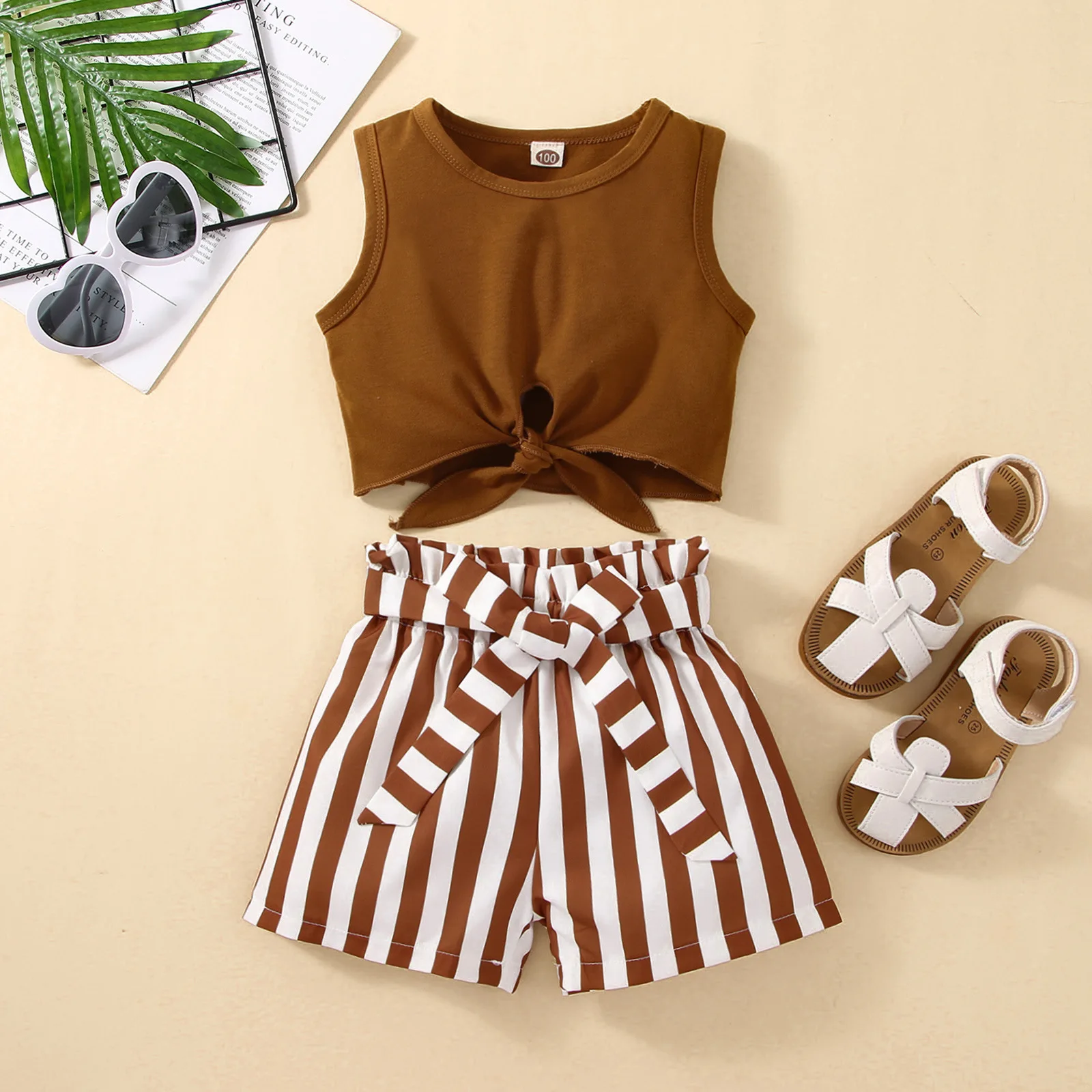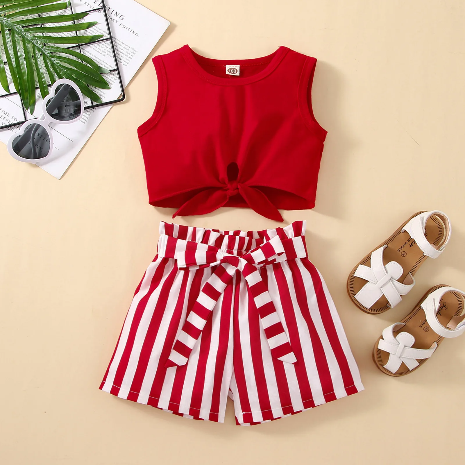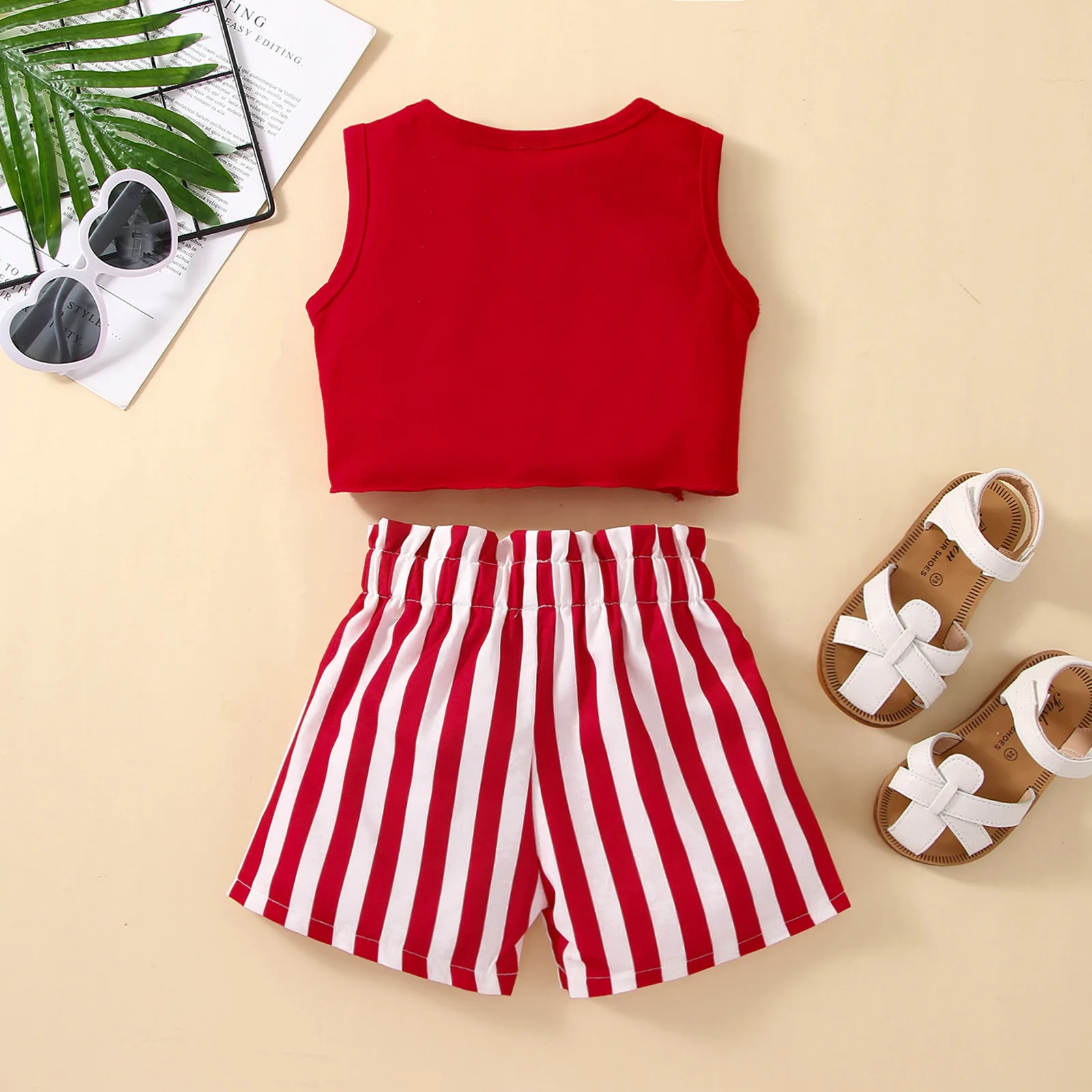 Fashion Two-Piece Cotton Clothing Sets Toddler Boys Seaside Vacation Inspired Baby Sleeveless Top Striped Shorts Girls Casual