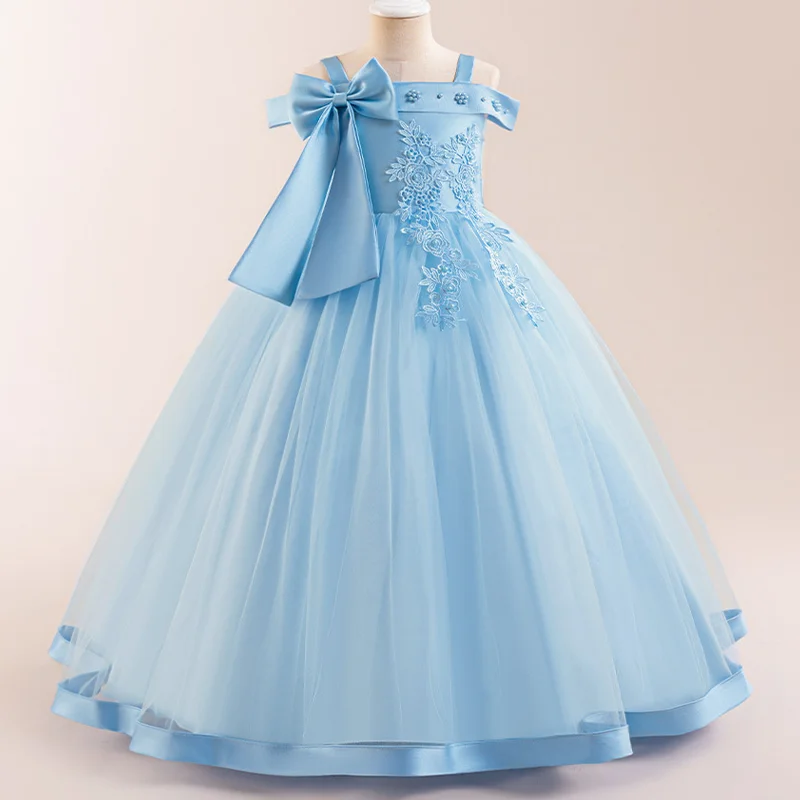 Product Name:”Girls Formal Dress Airplane Sleeve Butterfly Bow Flower Princess Dress”,