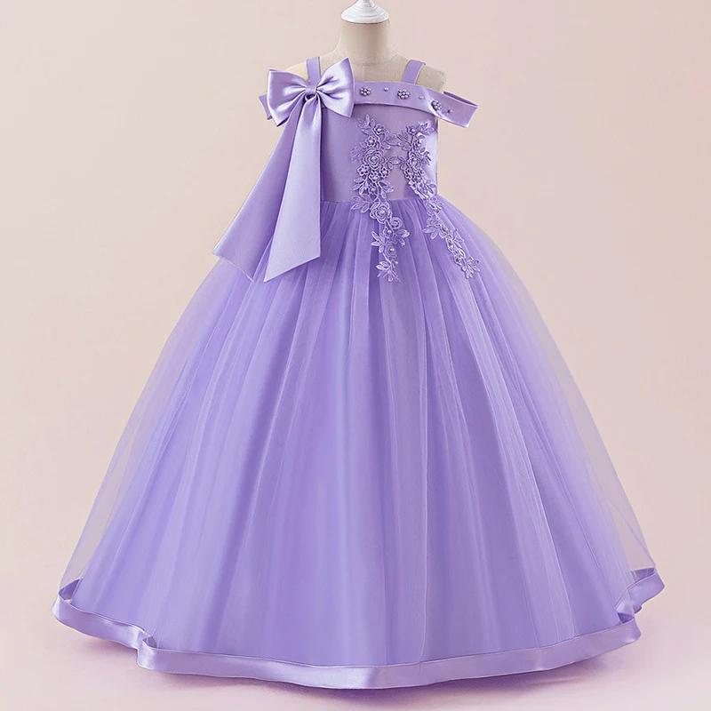 Girl Dress for Party Girl Holiday Party Dress Bow Flower Girl Princess Dress Off-ShouderParty Wedding Birthday Daily Cute