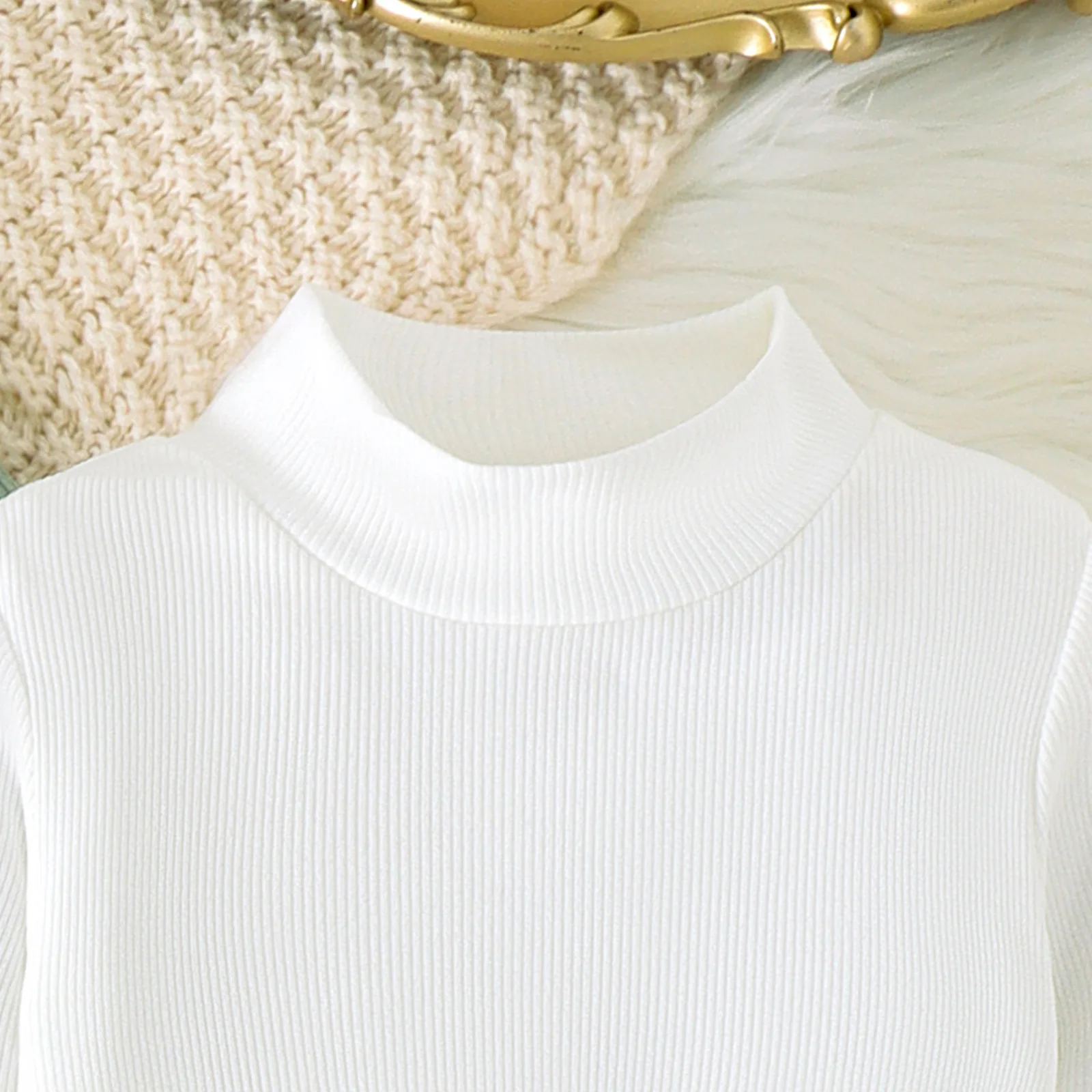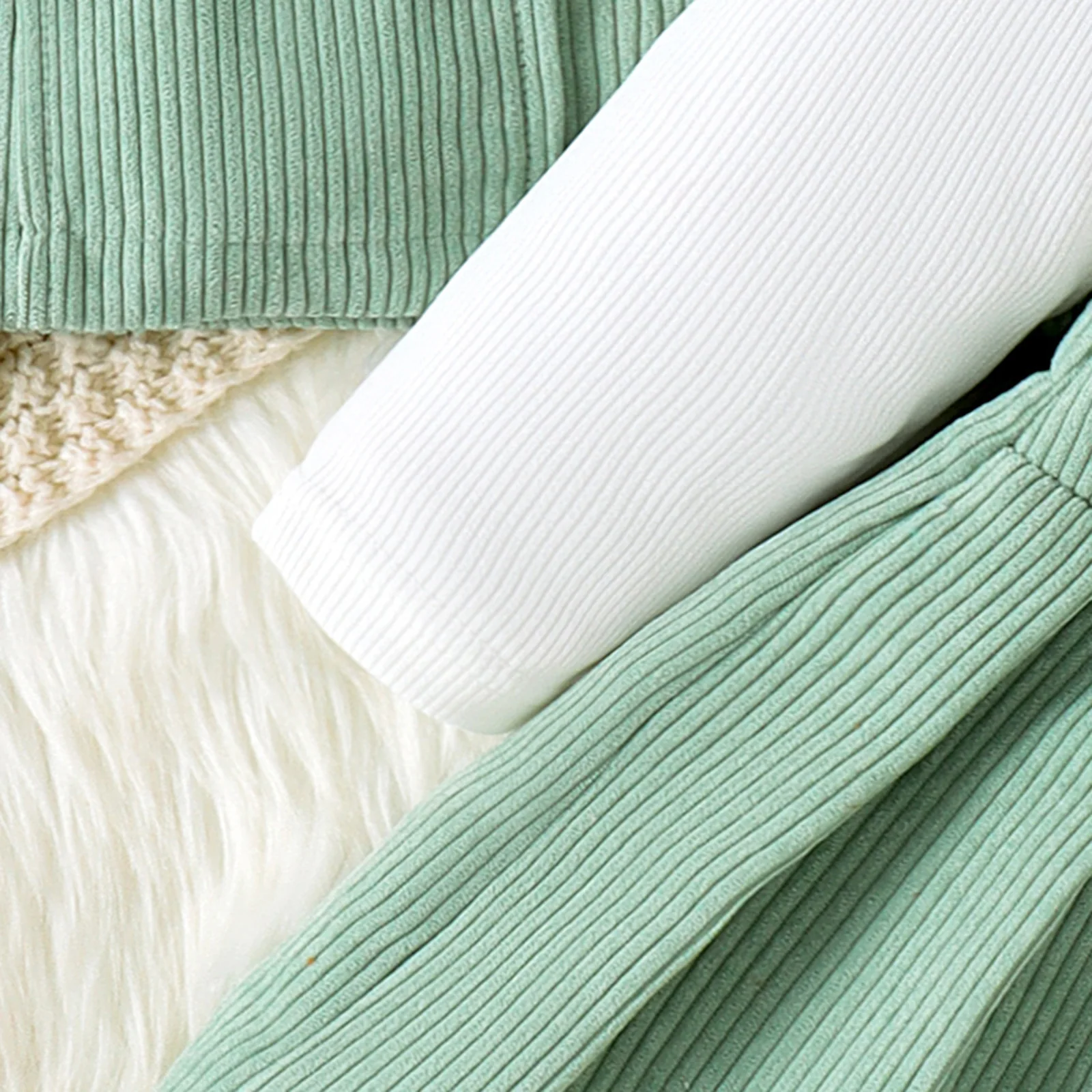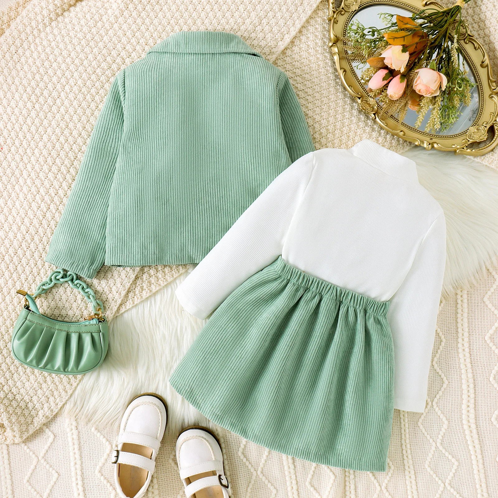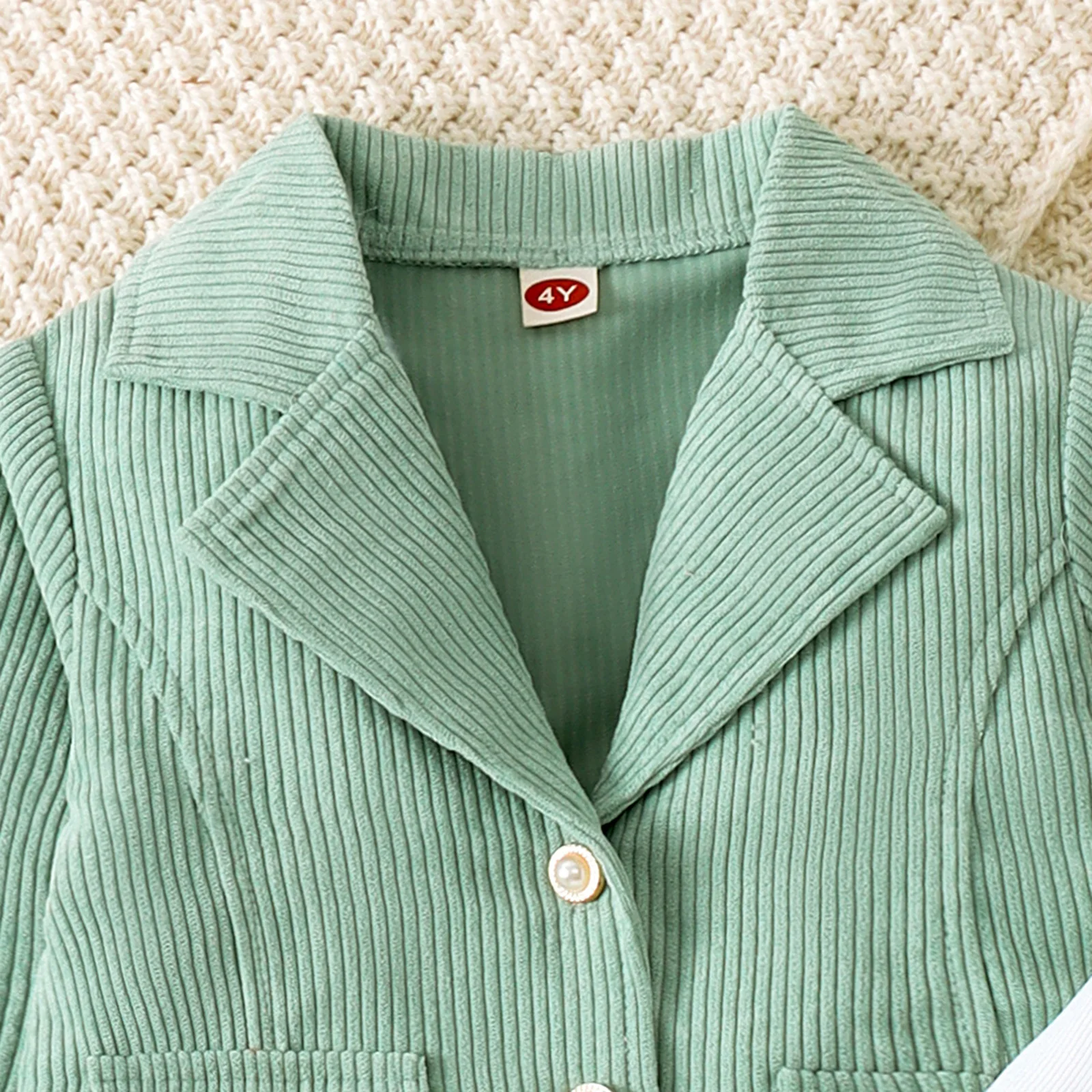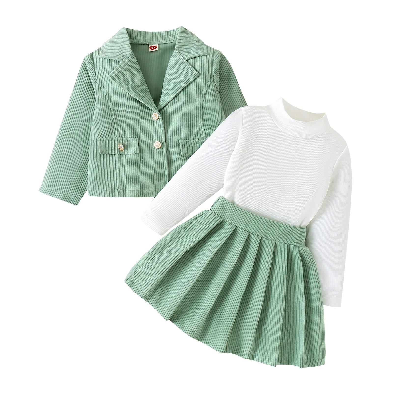 Girls’ Autumn and Winter Coarse Lapel Suit Jacket Round Neck Solid Color Top Pleated Skirt Three Piece Set