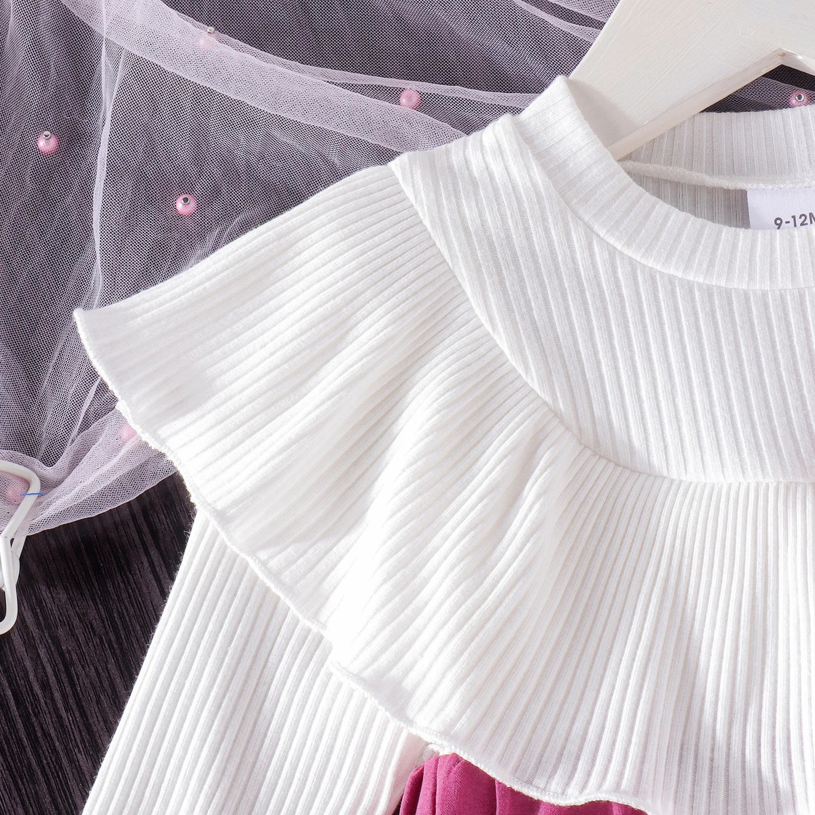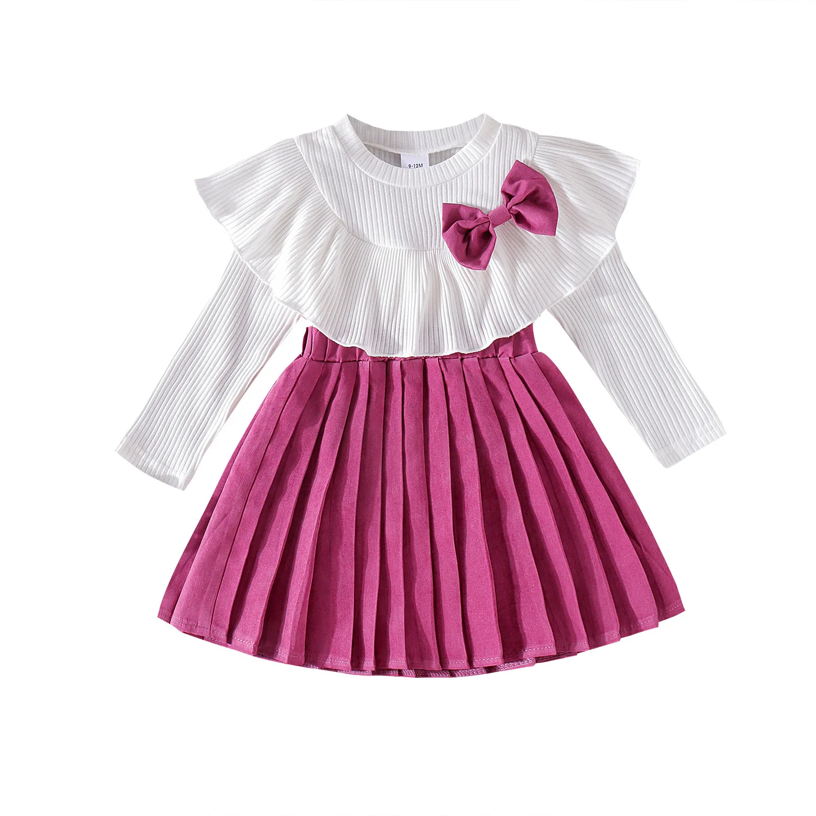 Girls Clothing Set Long Sleeve Pleated Dress With Doll Collar and Bow New Use Clothes