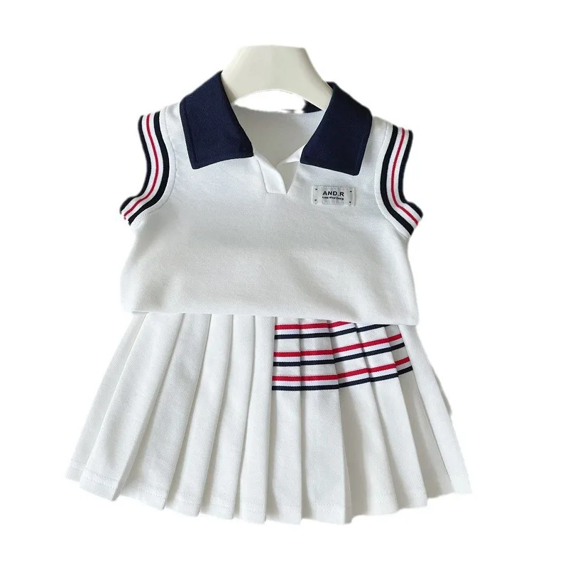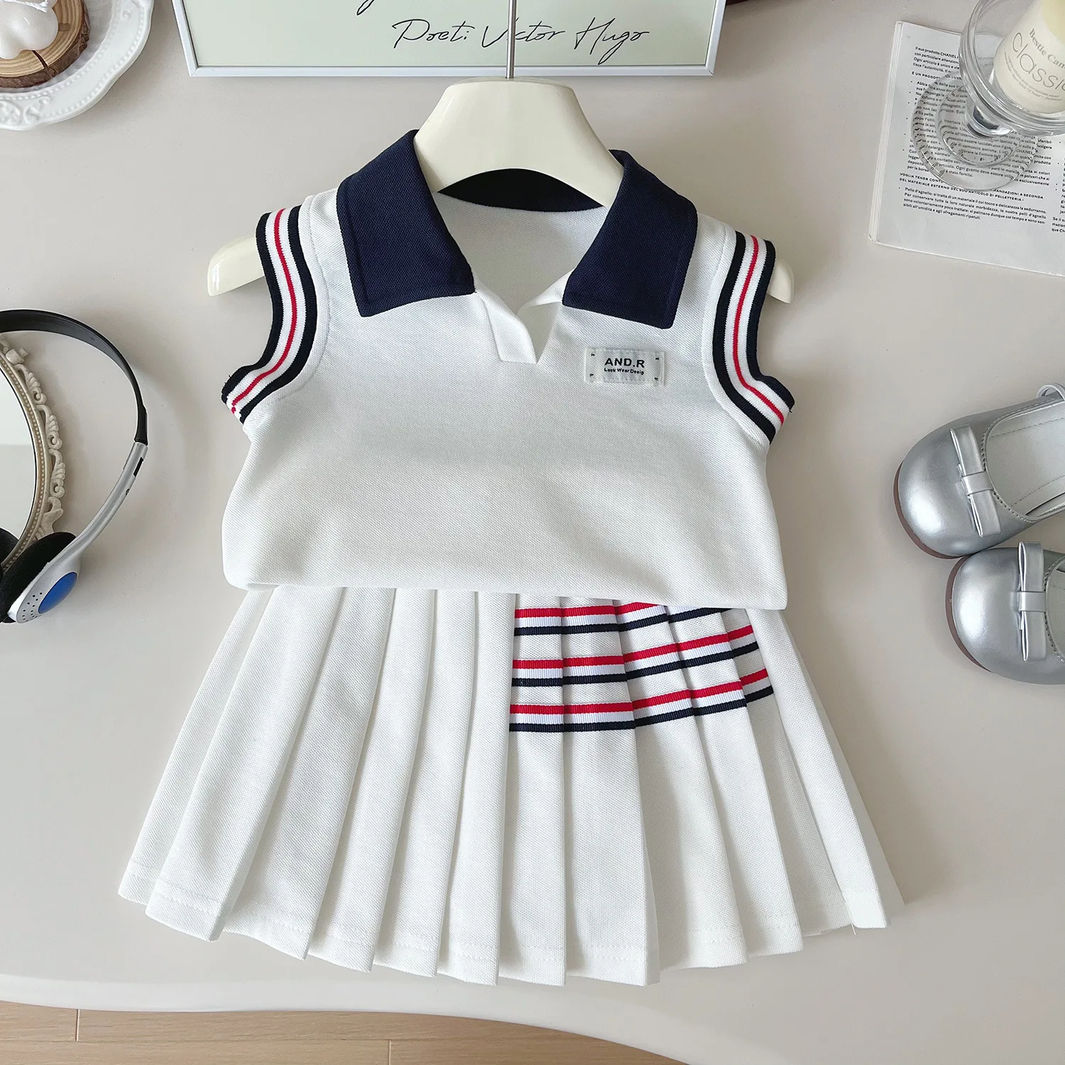 Girls’ College Style Polo Collar Sleeveless Vest Set Thin 2026 Summer New Style Pleated Skirt Two-piece Set