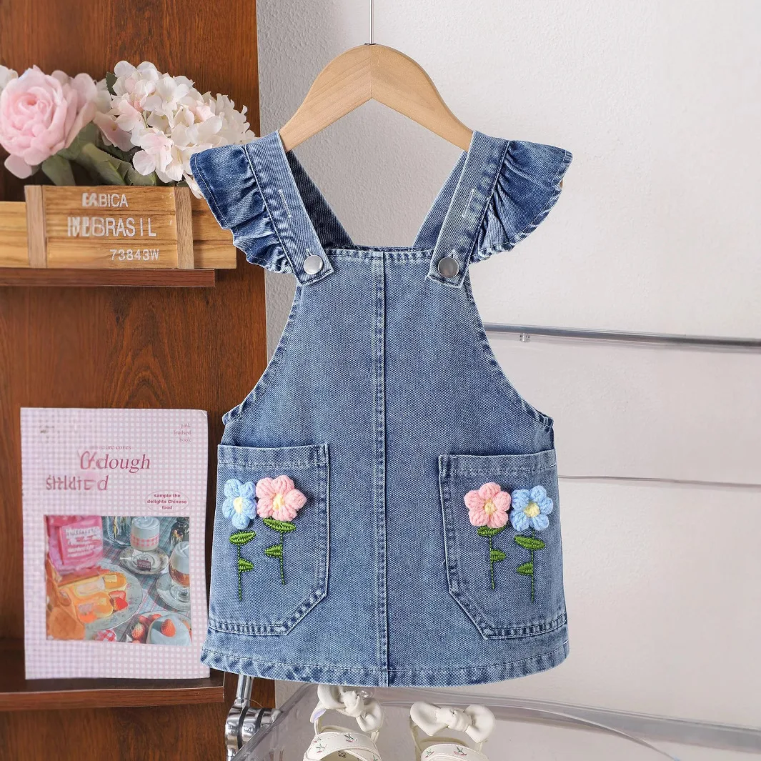 Girls Suits for Summer Hot Sale Solid Color Short-sleeved T-shirt Flying Sleeve Strap Dress Two-piece Set