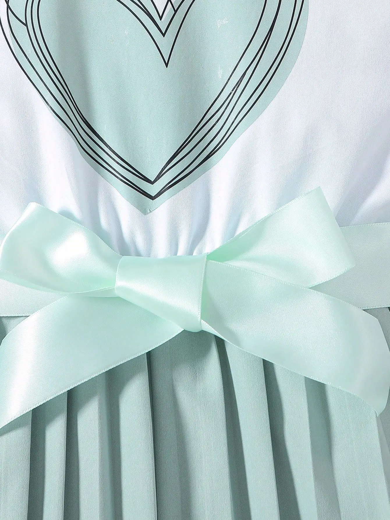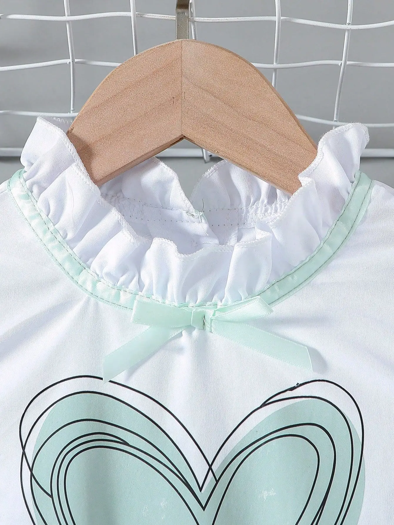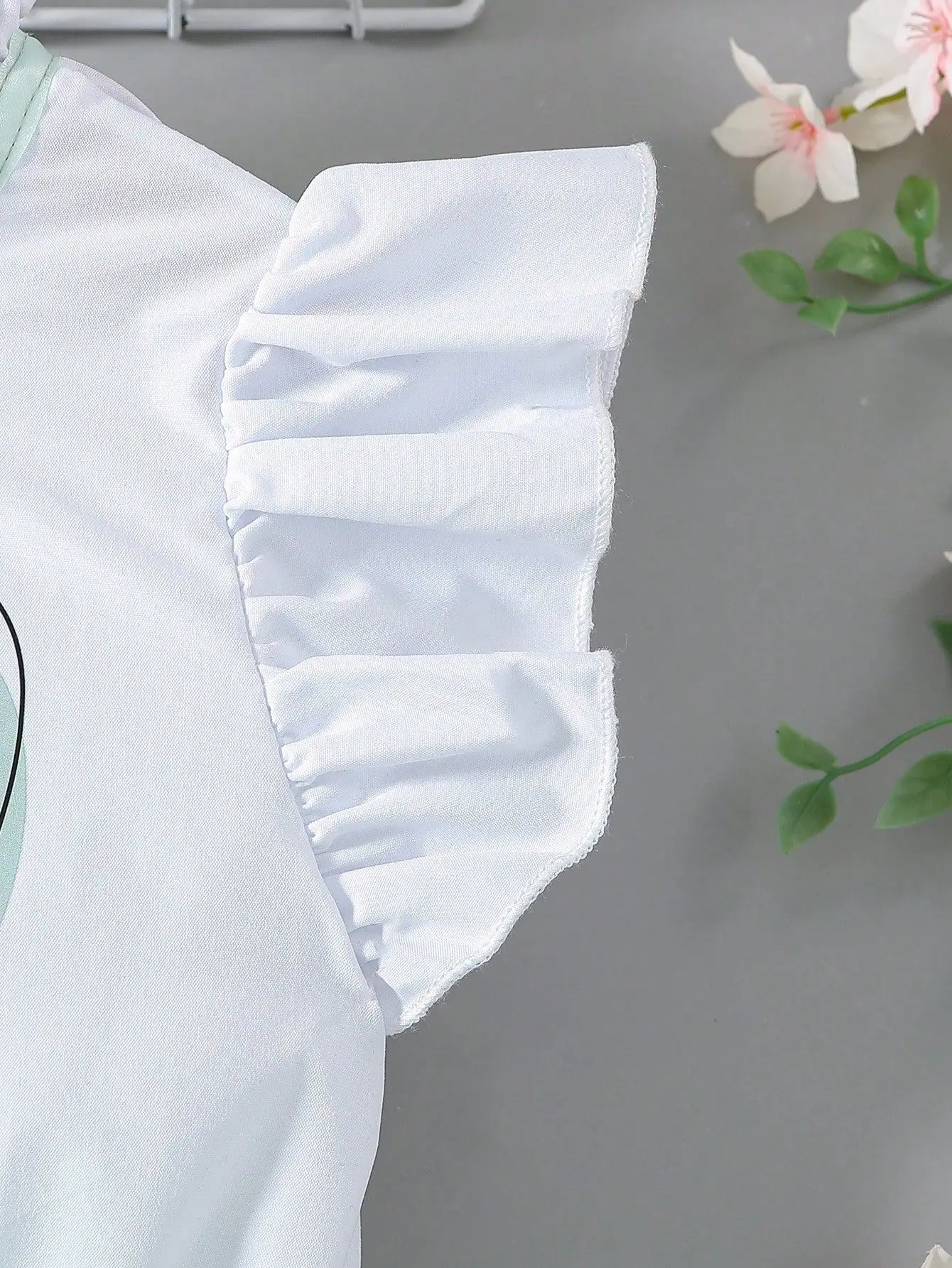 Girls Summer Suit Flying Sleeve Lotus Collar Top Wrinkled Wide Legs Trousers With Belt (Runnier)