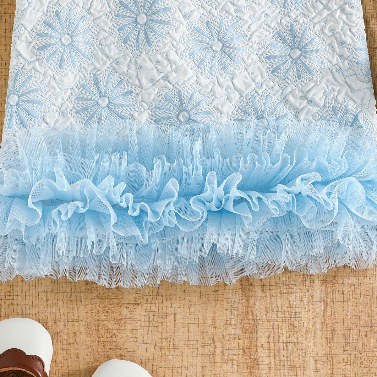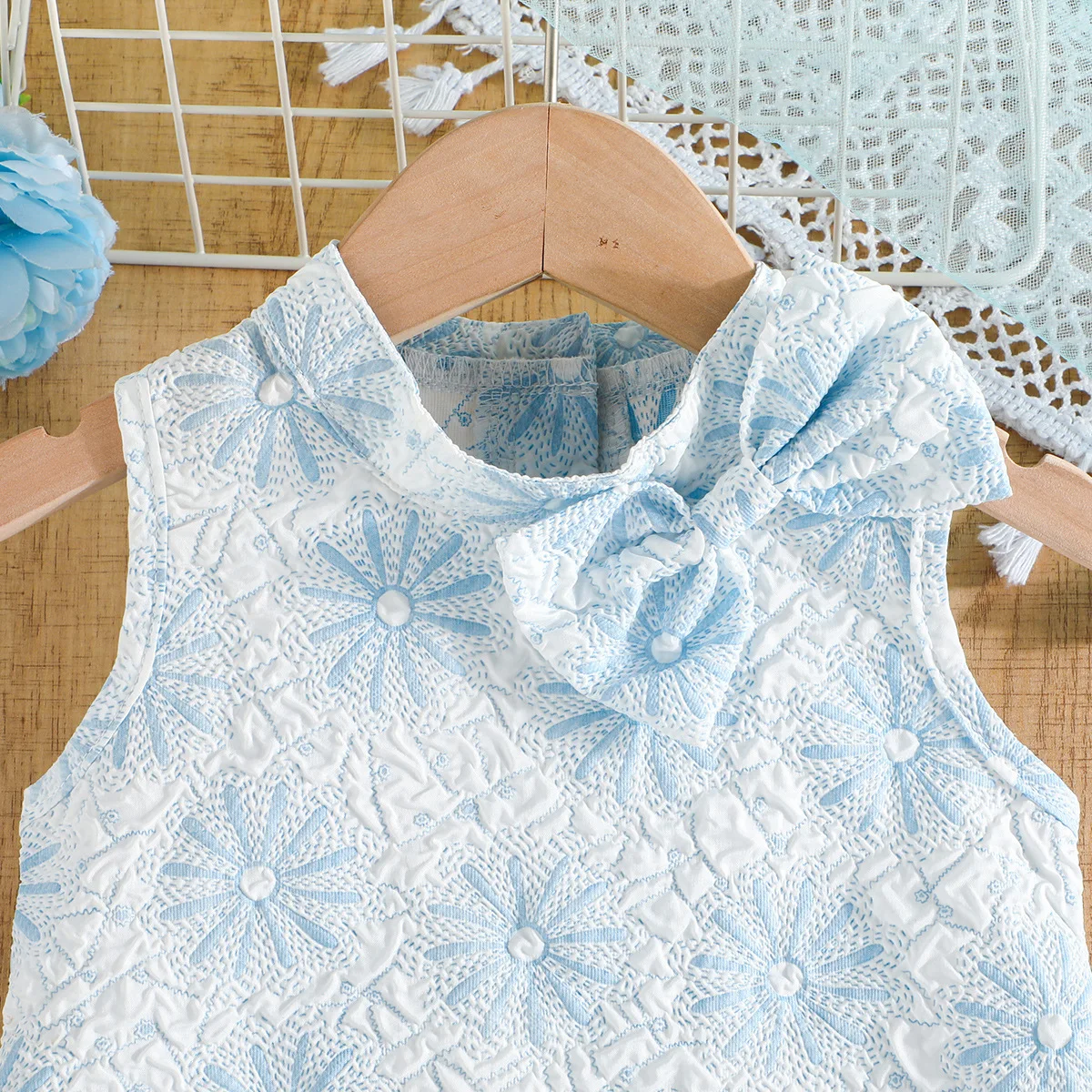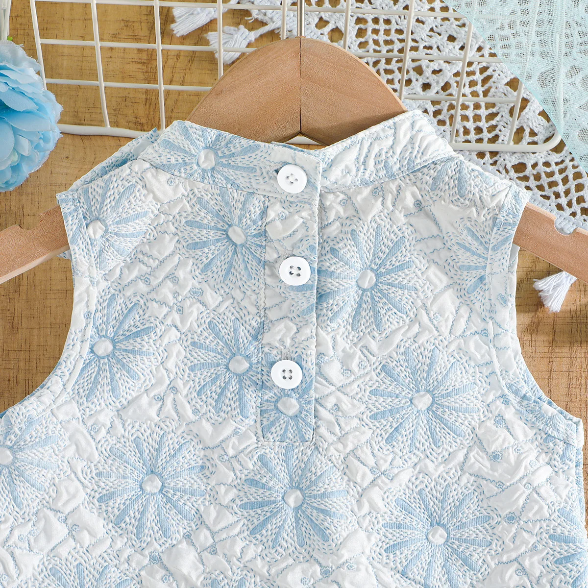 Product Name:”Exclusive Childrens Clothing For Girls Sky Blue Sleeveless Ruffle Lace”,