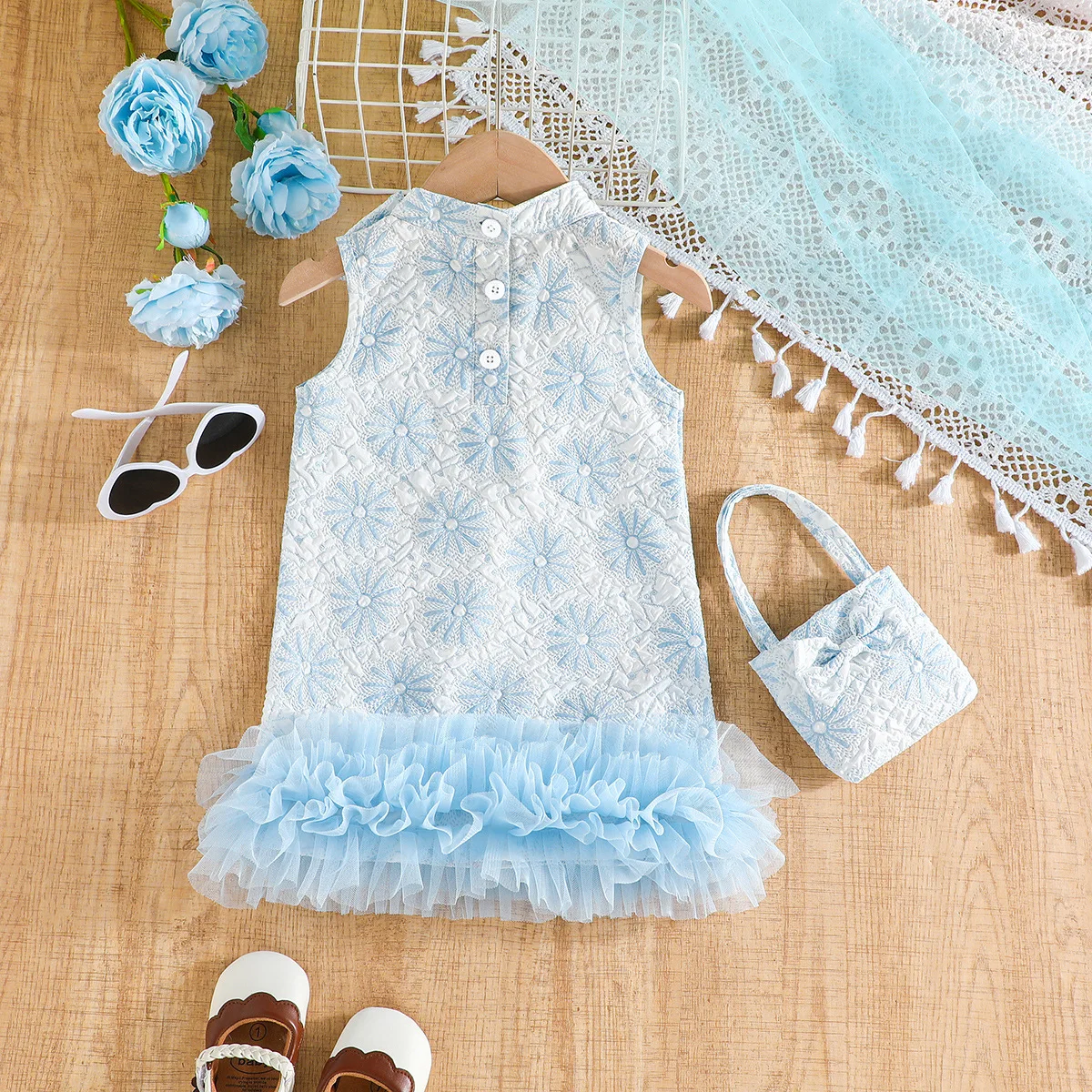 Great Quality Children Clothing for Girls Sky Blue Sleeveless Ruffle Princess Baby Girls Dresses Small Fragrant Style Vest Dress