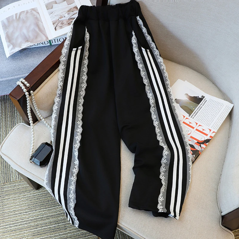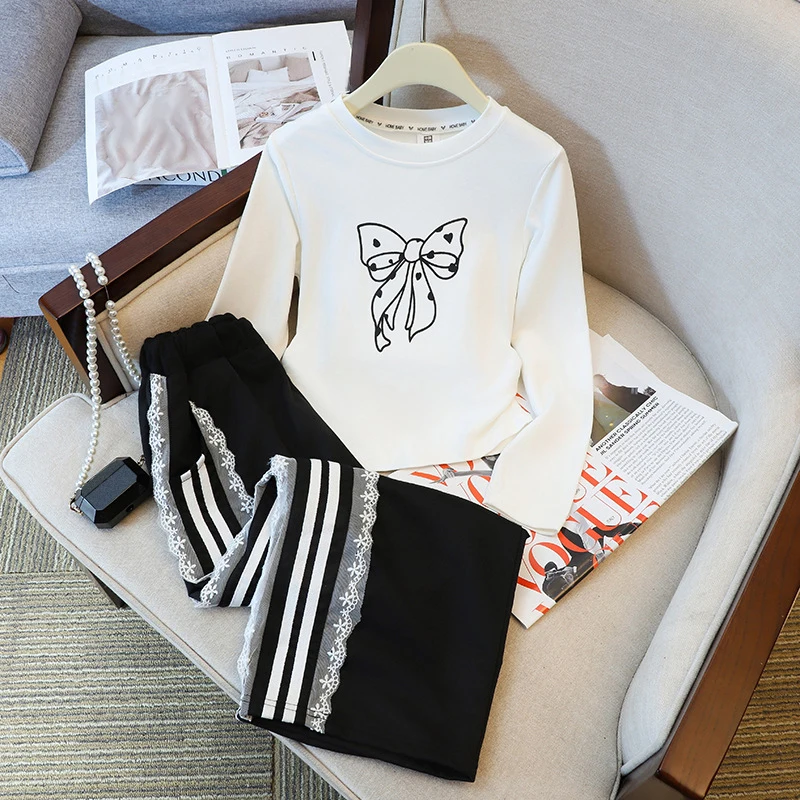 Latest Popular Spring Autumn Kids Sweet Suits 2pcs Printed T-shirt+Lace Pants Casual Teenager Girls Clothes Sets
