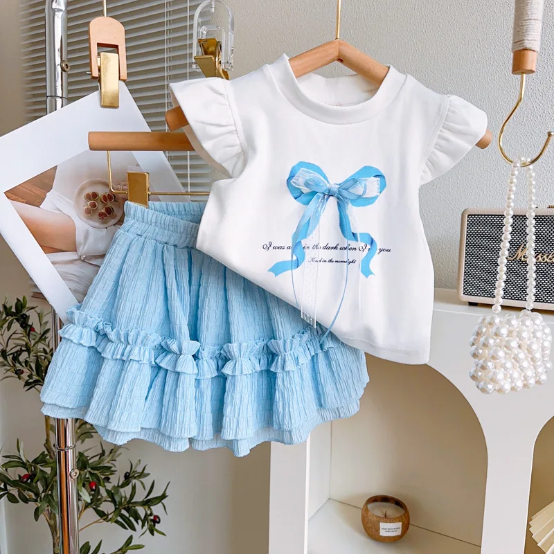 Little Girls Summer Clothing Sets Summer Girls Wear Short Sleeve Plaid Half Skirt Two-Piece Fashion Girls Clothing Sets