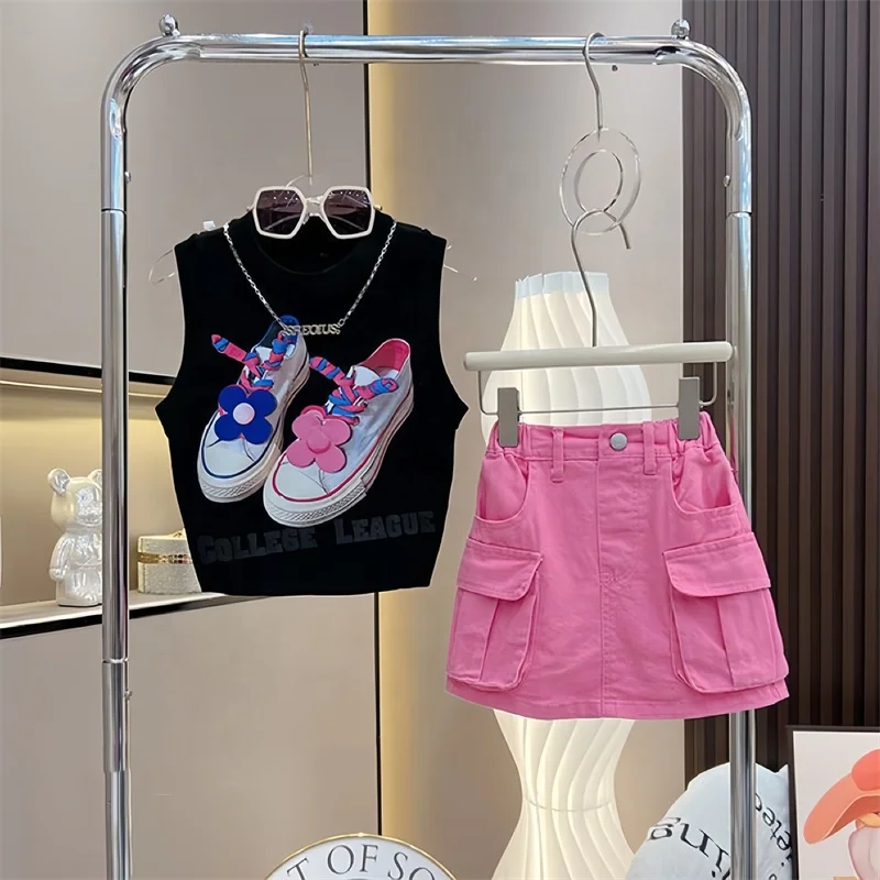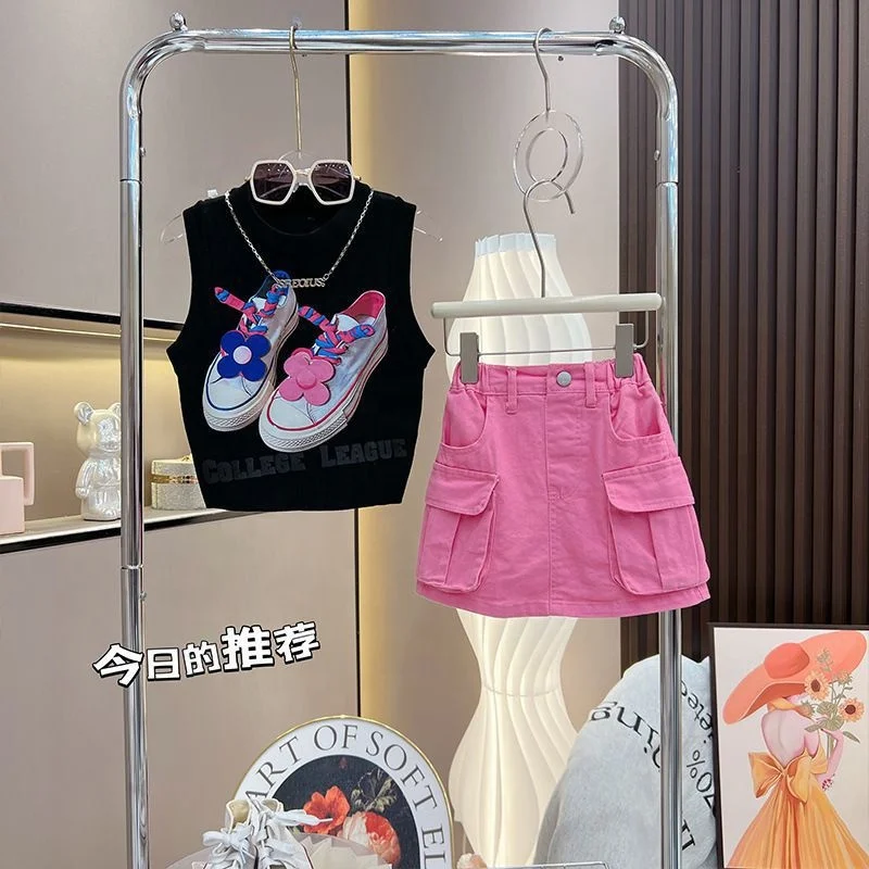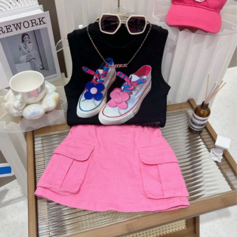 Ms-158 Toddler Girl 2 Piece Clothing Children’s Set Summer Sleeveless Vest Short Skirt Korean Baby Dresses Girl Kids Clothing