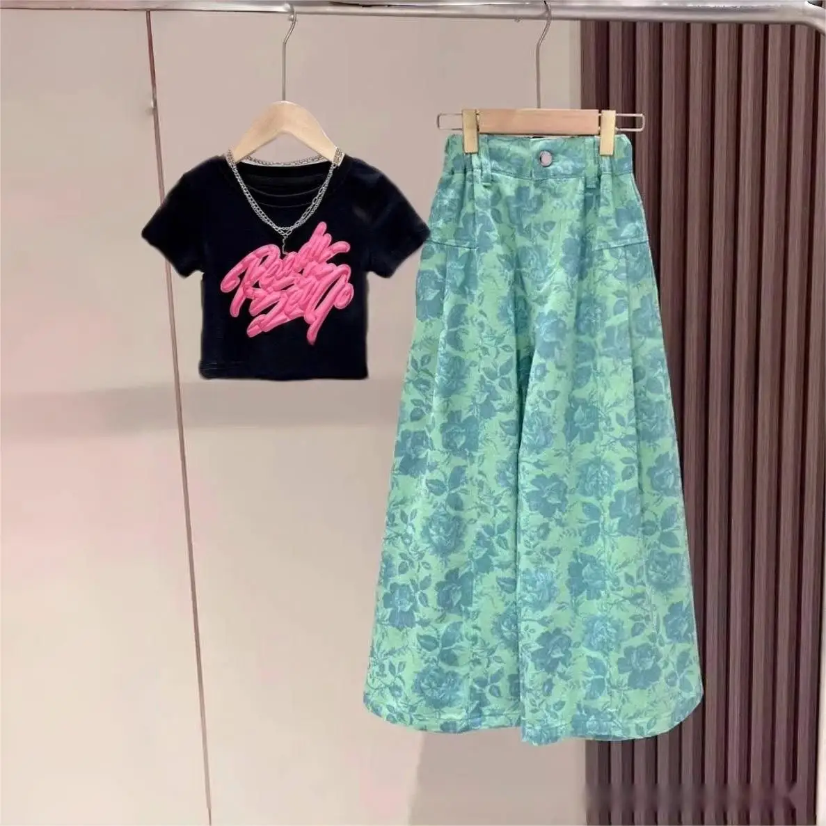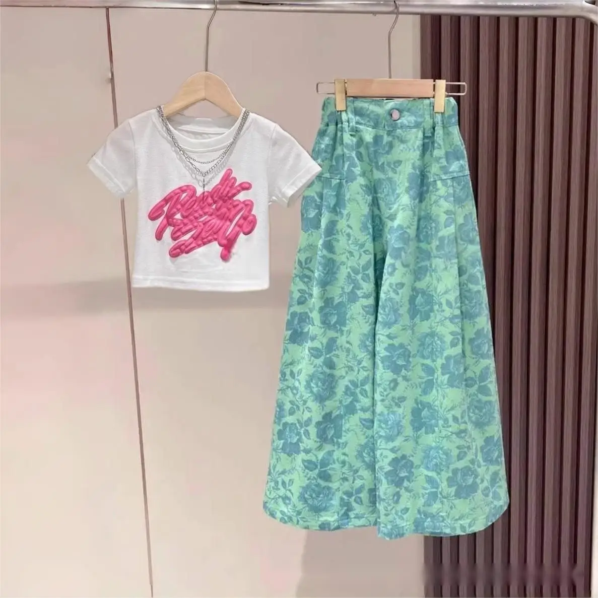 New Summer Fashion Teenagers Baby Children Outwear 2pcs T-shirt and Pants Casual Kids Girls Clothing Sets