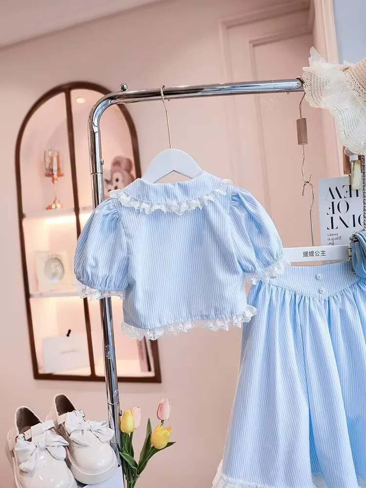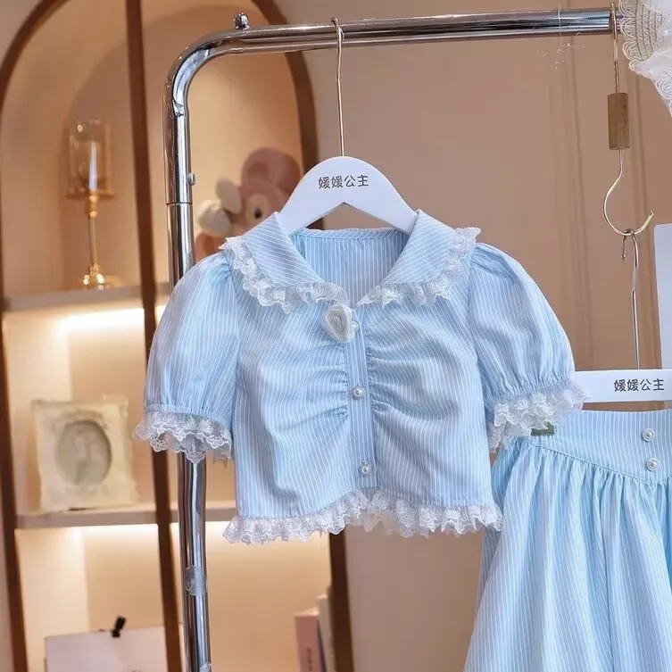 New Sweet Design Summer Children Outfits 2pcs Lace Princess Teenagers Girls Clothes Sets