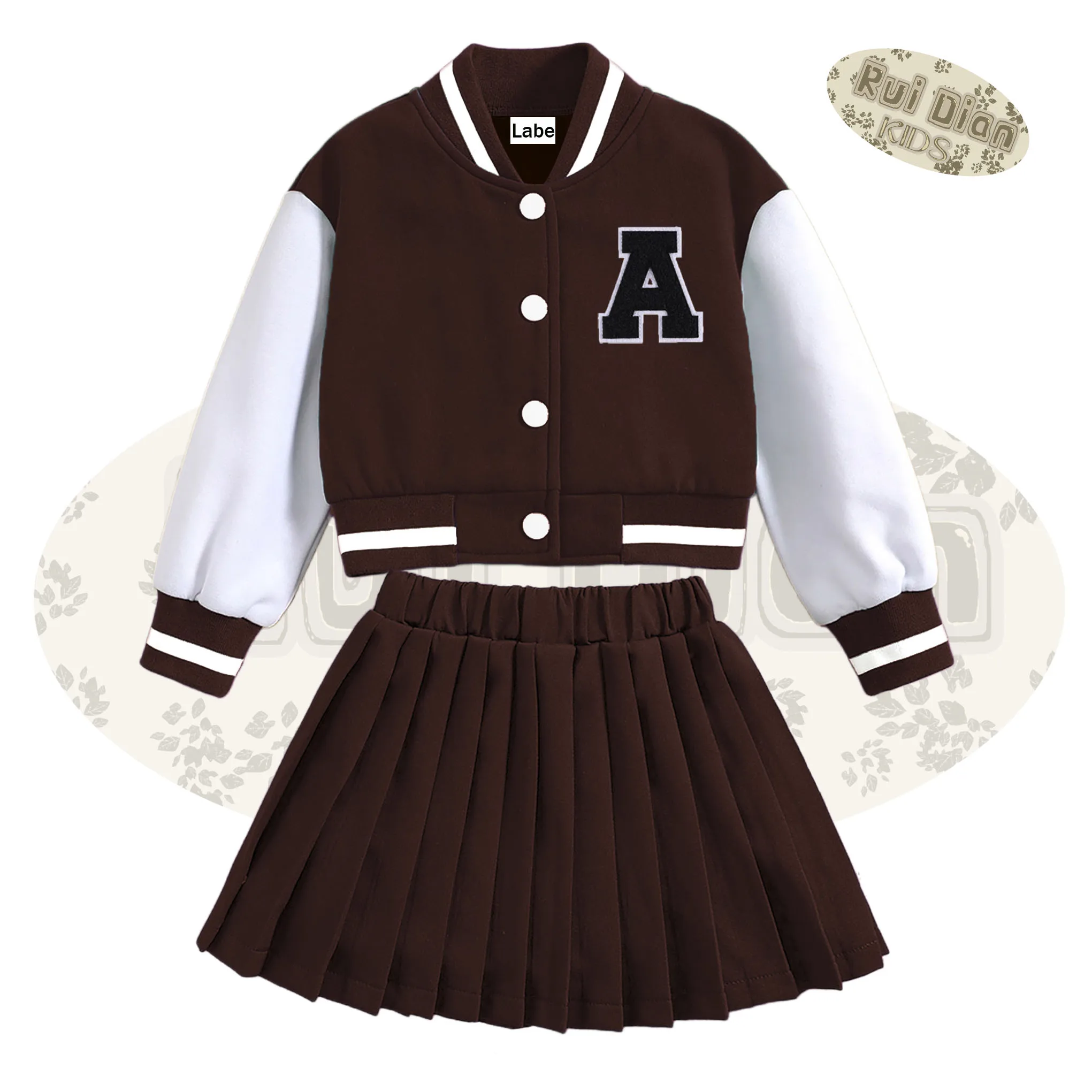 Ruidian Custom Winter Set for Girls Cotton Casual Jacket & Pleated Skirt Adorable Outfits for Kids Aged 2-12 Years