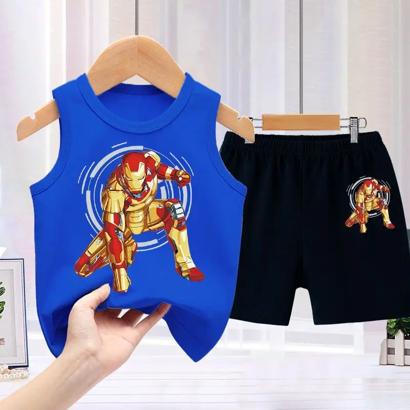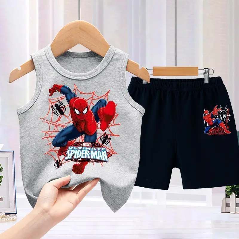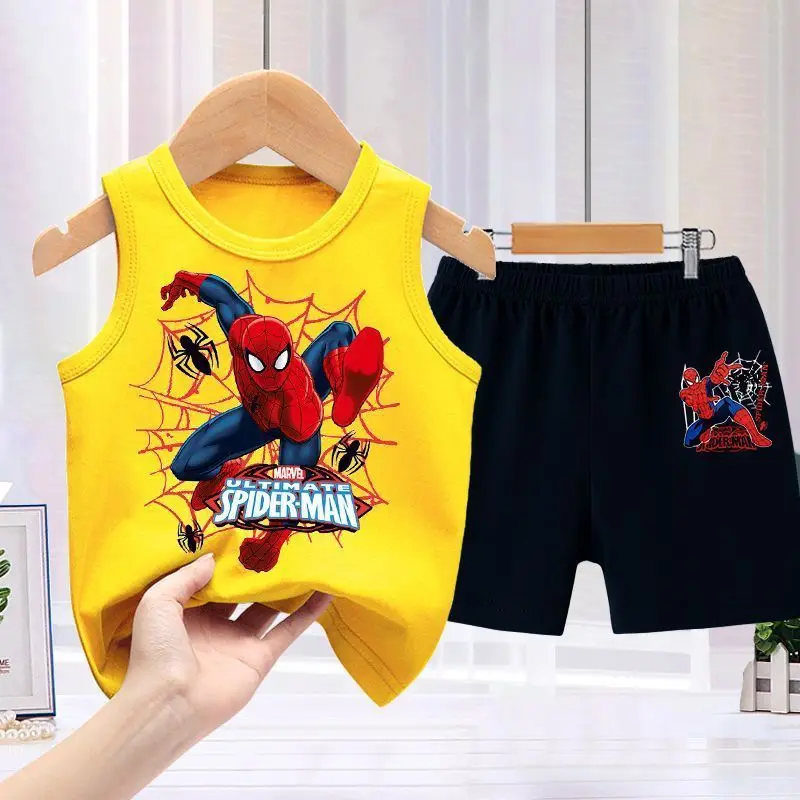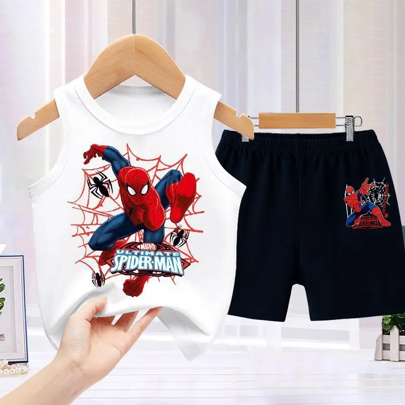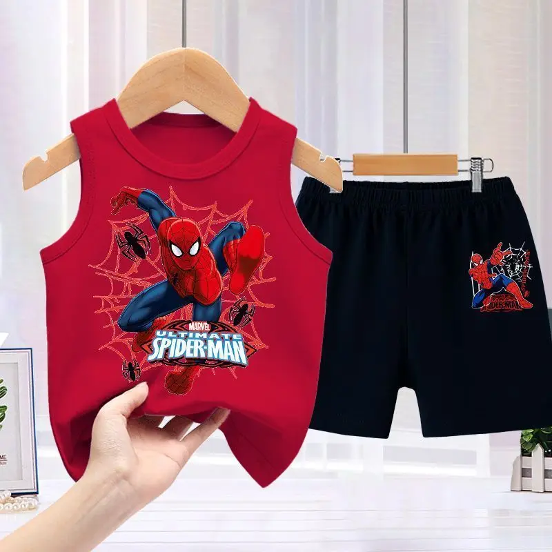 Spider-Man Two-Piece Set for Boys Summer Sports Vest Shorts Formal-Casual Cotton Print Baby Fashion Boys’ Sports Shirt Shorts