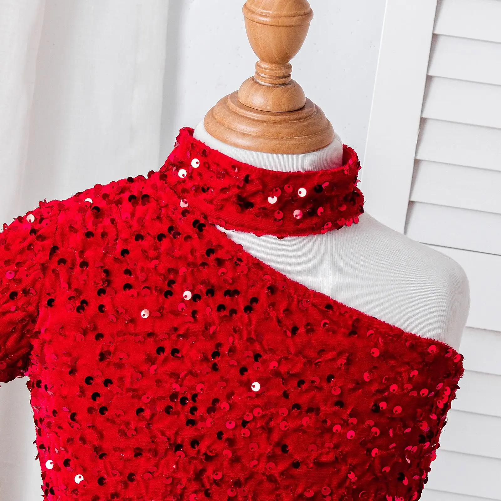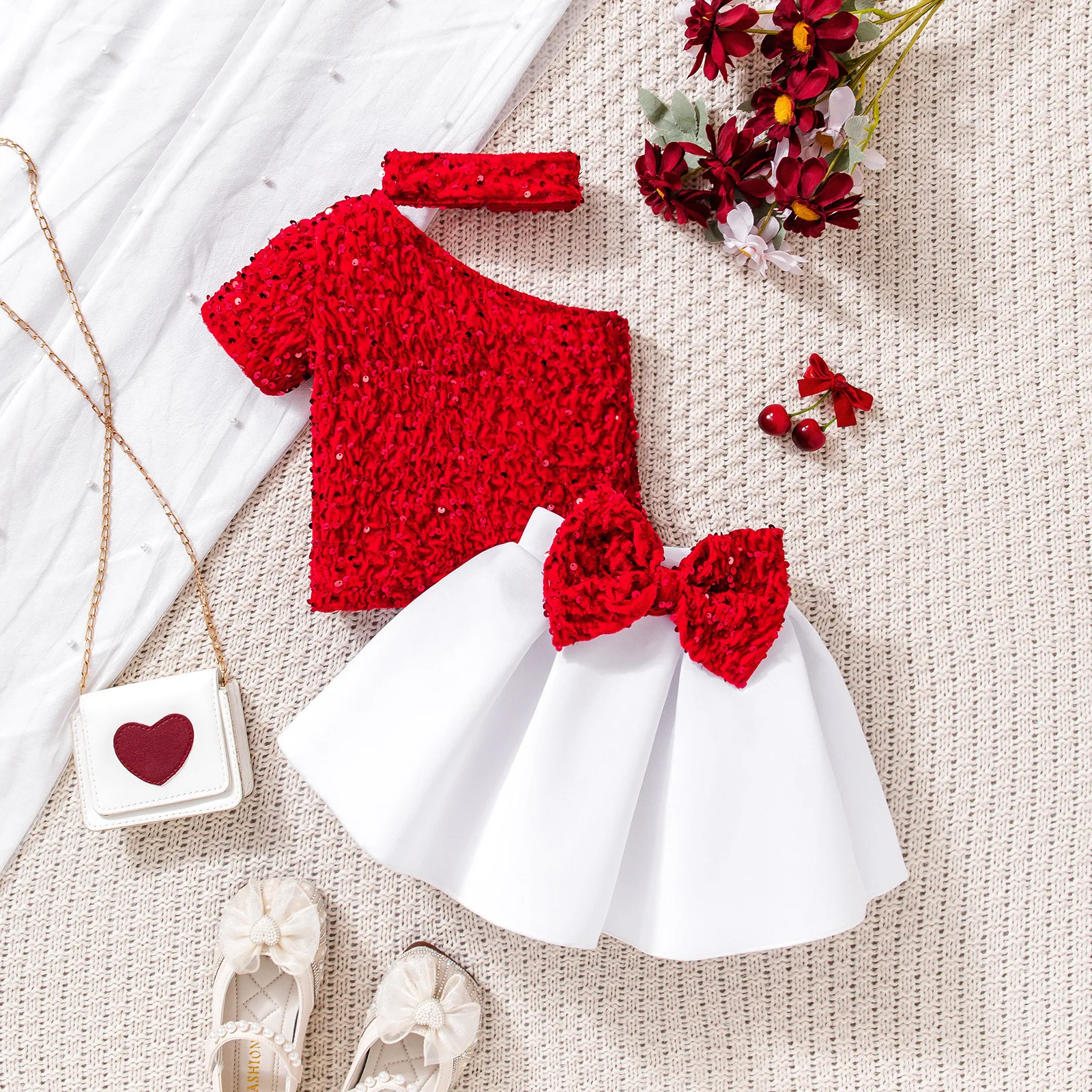 Summer Cute Girl Casual Suit Baby Child Hanging Neck Shoulder Sequin Short Sleeve Unkempt Cotton Skirt