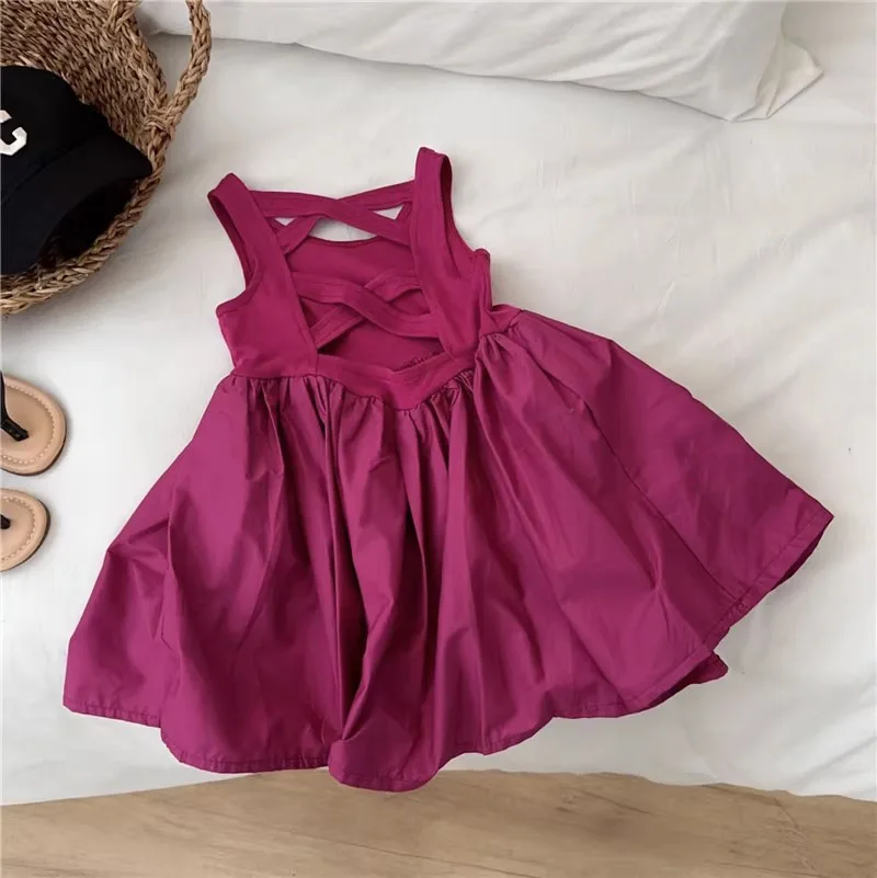 Summer Kids Girls Skirt Rose Red Blank Children Vest Dress Backless Casual Tank Dresses Pink Clothing Girl Baby Girl Dresses