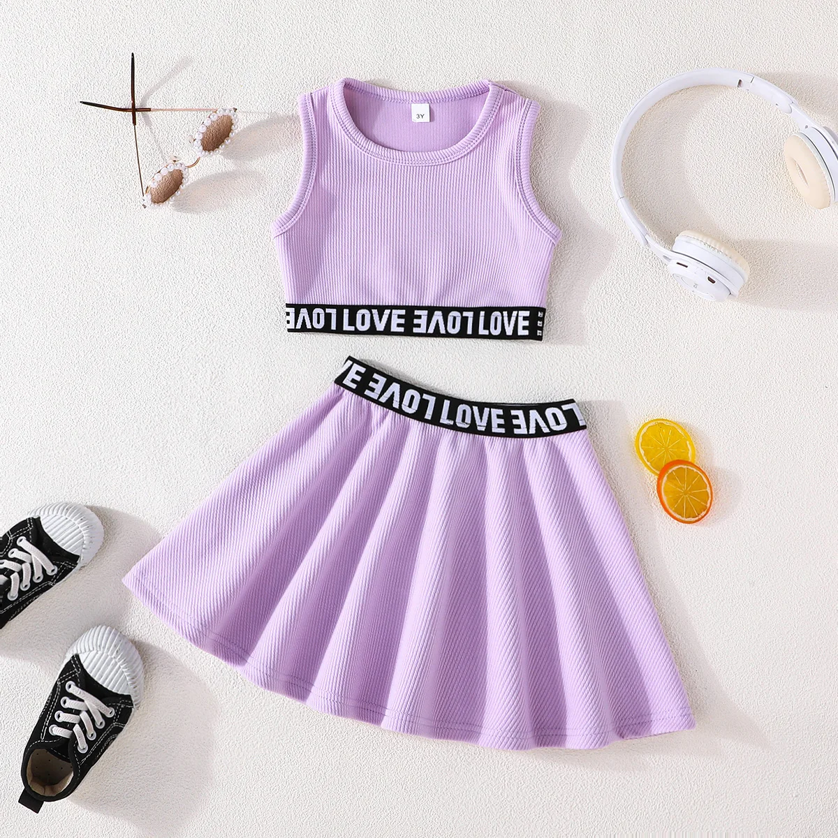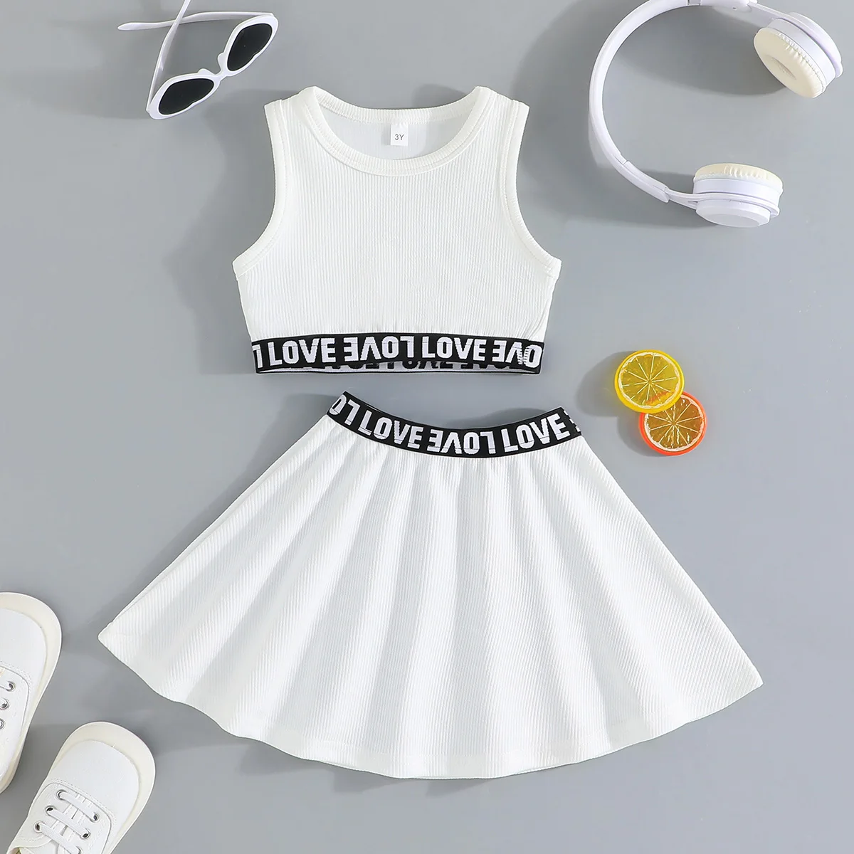 Teenage Girls Clothing Summer3 to 8 Years Fashionable Sleeveless Top and Short Skirts Little Girls Girls Clothing Sets Wholesale