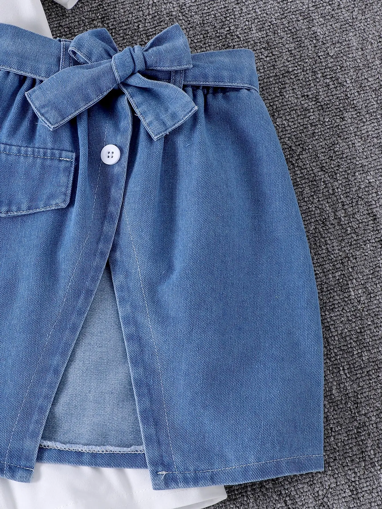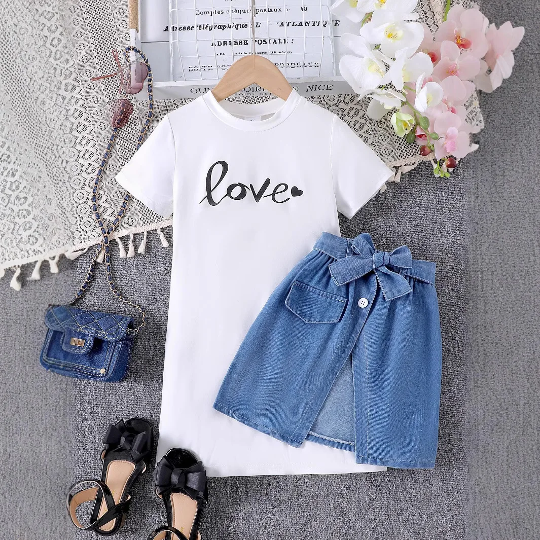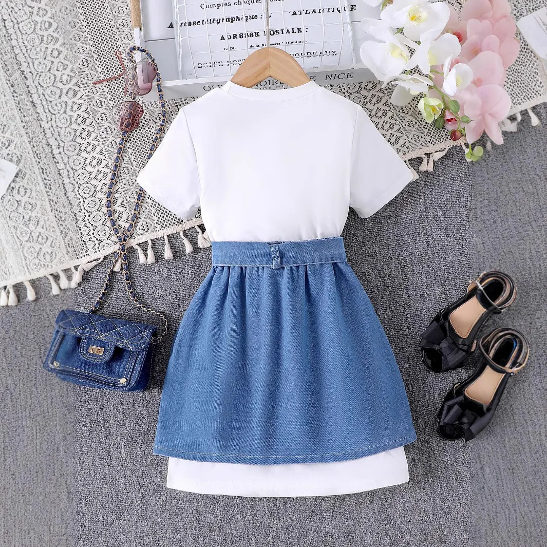 Wholesale New Kids Fashion Design Children Clothes Set Top Bow Denim Patchwork Skirt Girls Outfits