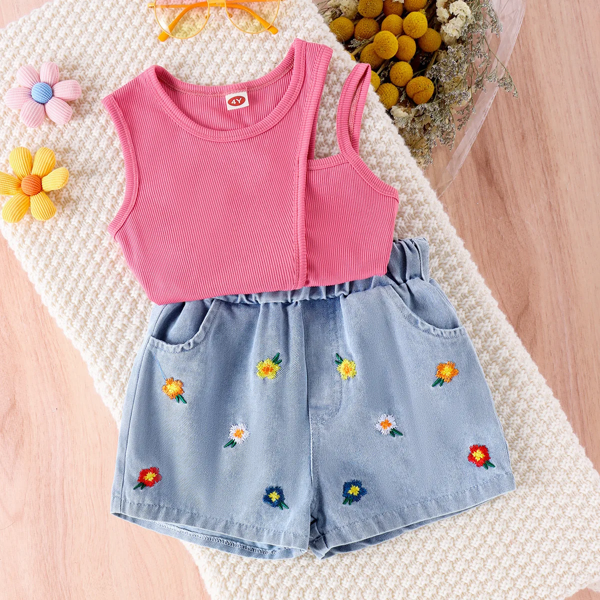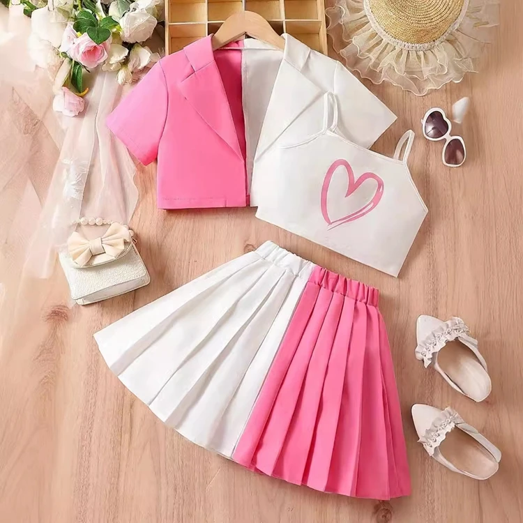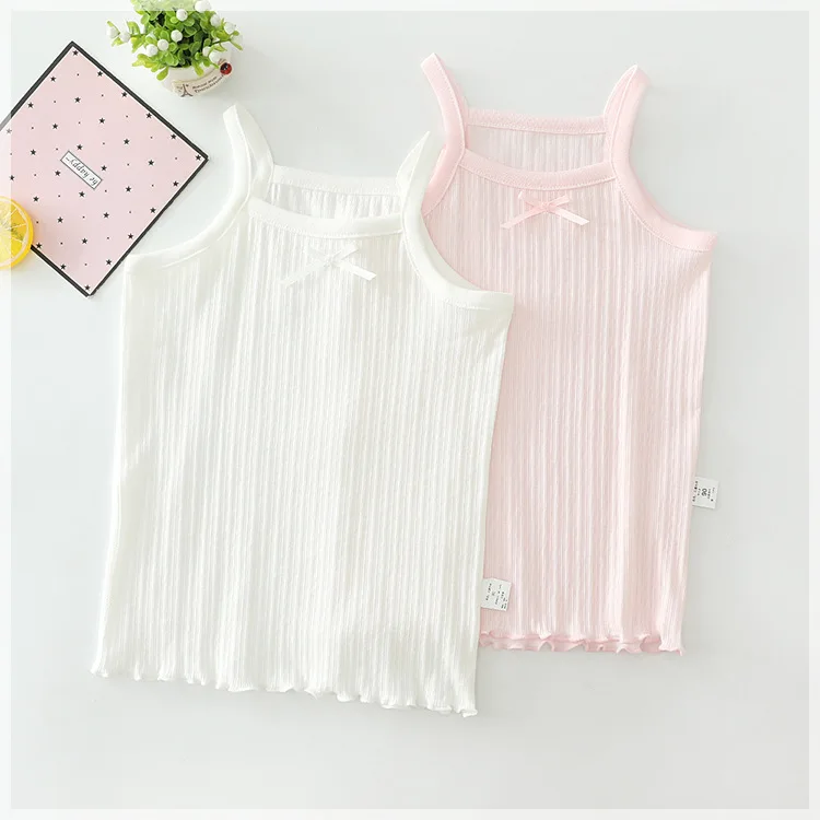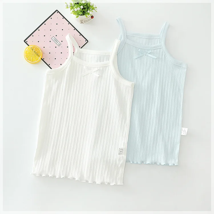 Wholesale Summer 100% Cotton Sleeveless Spaghetti Strap Sling Vest Outfit Kid’s Baby Girls 2 Pcs Set for Summer Use