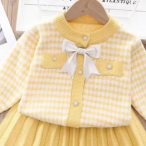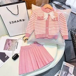 Winter Hot Selling New Girls’ Little Cardigan Set Skirt High Quality Coat + Short Skirt Girls Clothes Set